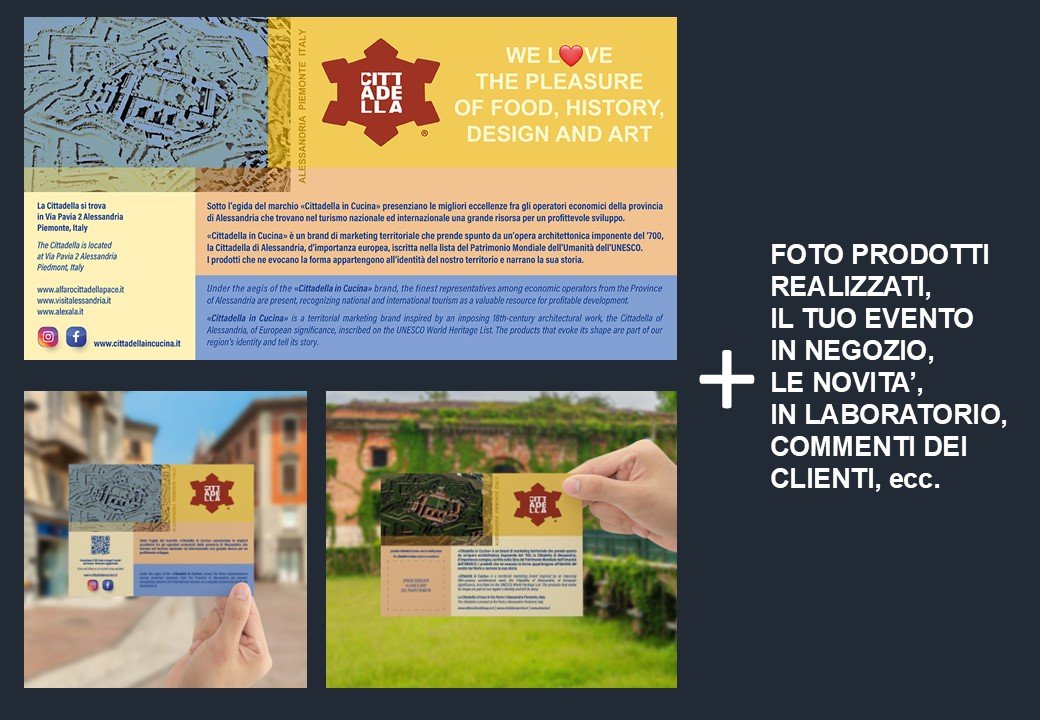 Materiali espositivi di comunicazione per il punto vendita con display da banco ed impaginati per materiale cartaceo ad uso della clientela.