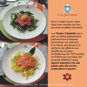 Ecco le tartare di fassona piemontese e di salmone. Buon appetito!
